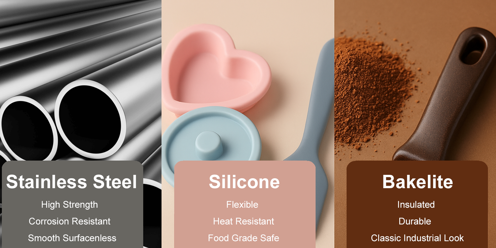 steel + bakelite, steel + silicone